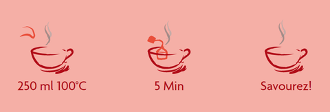 Verser 250 ml d’eau bouillante sur le sachet et laisser infuser 5 minutes.
